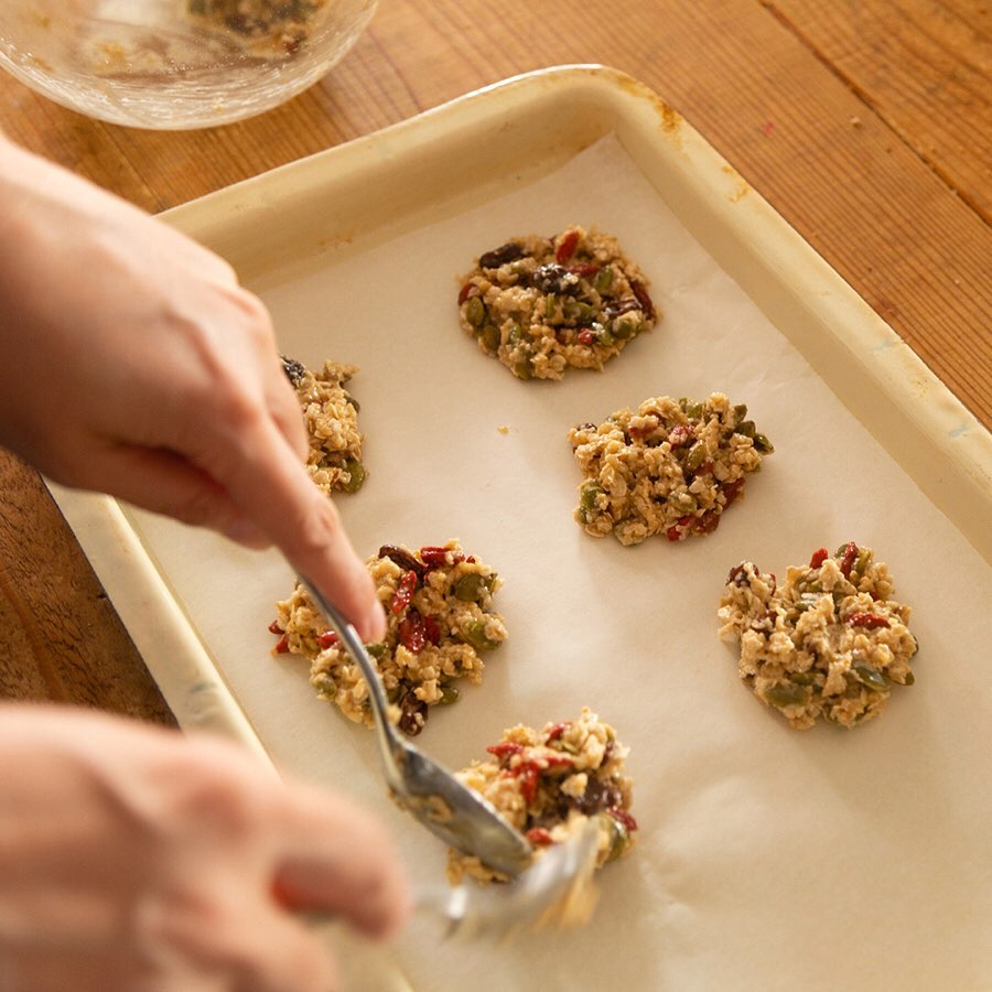 今回のレシピは、「バランス良く組み合わせた かぼちゃの種&フルーツ」を使った「パンプキンシードオーツクッキー」。ボウルで混ぜて焼くだけの、さっくりとした食感の簡単おやつです。