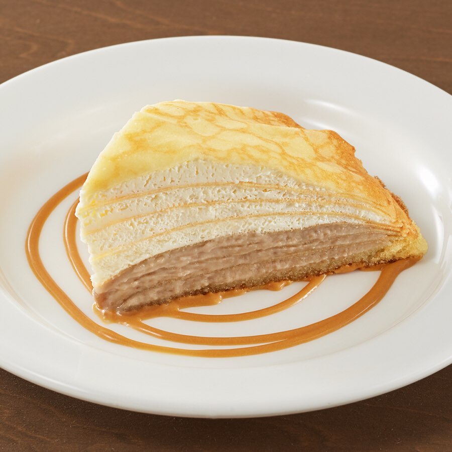 味、香り、食感でしっかり栗を感じられる2種類のクリームと、しっとりと焼き上げたクレープ生地との相性がよいミルクレープです。