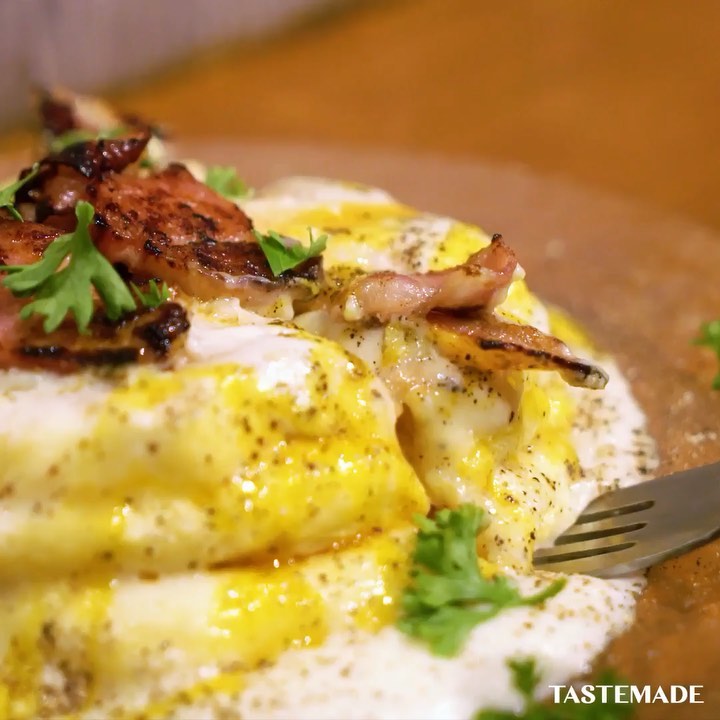 【しゅわ〜っとトロける】カルボナーラパンケーキ🥞🥓🍳⠀ 店名:Parlor Vinefru銀座⠀