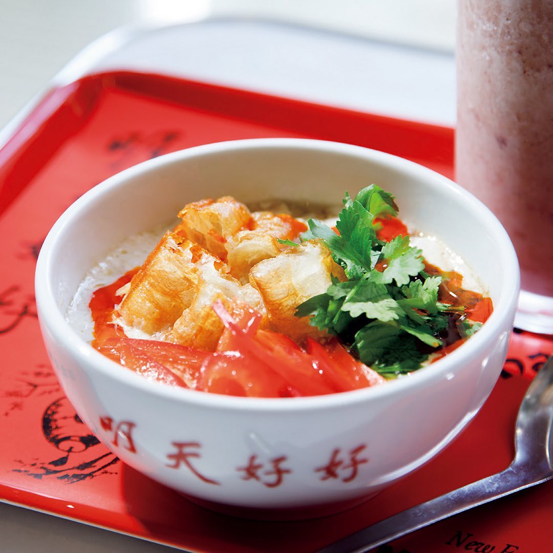看板メニューの台湾スイーツ「豆花」の他、もうひとつの名物が写真の「明天鹹豆漿」。台湾では朝ごはんの定番で、豆乳と黒酢を合わせてふわふわにした温かいスープは、優しい味わいが沁みる。