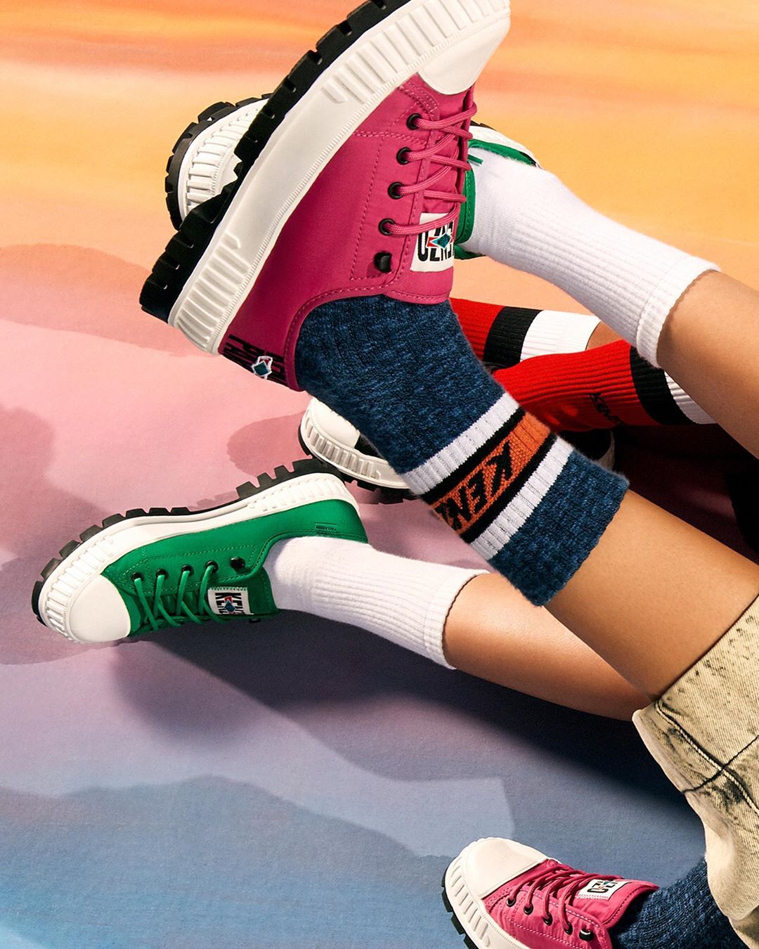 GLOBAL PLAYGROUND: Presenting the #KENZOxPALLADIUM community of modern explorers — from circus performers, Charlotte and Ben, Chantel, a movement artist, to athlete Ocean and skater Connor, the diverse cast showcases an exciting race of adventurers.