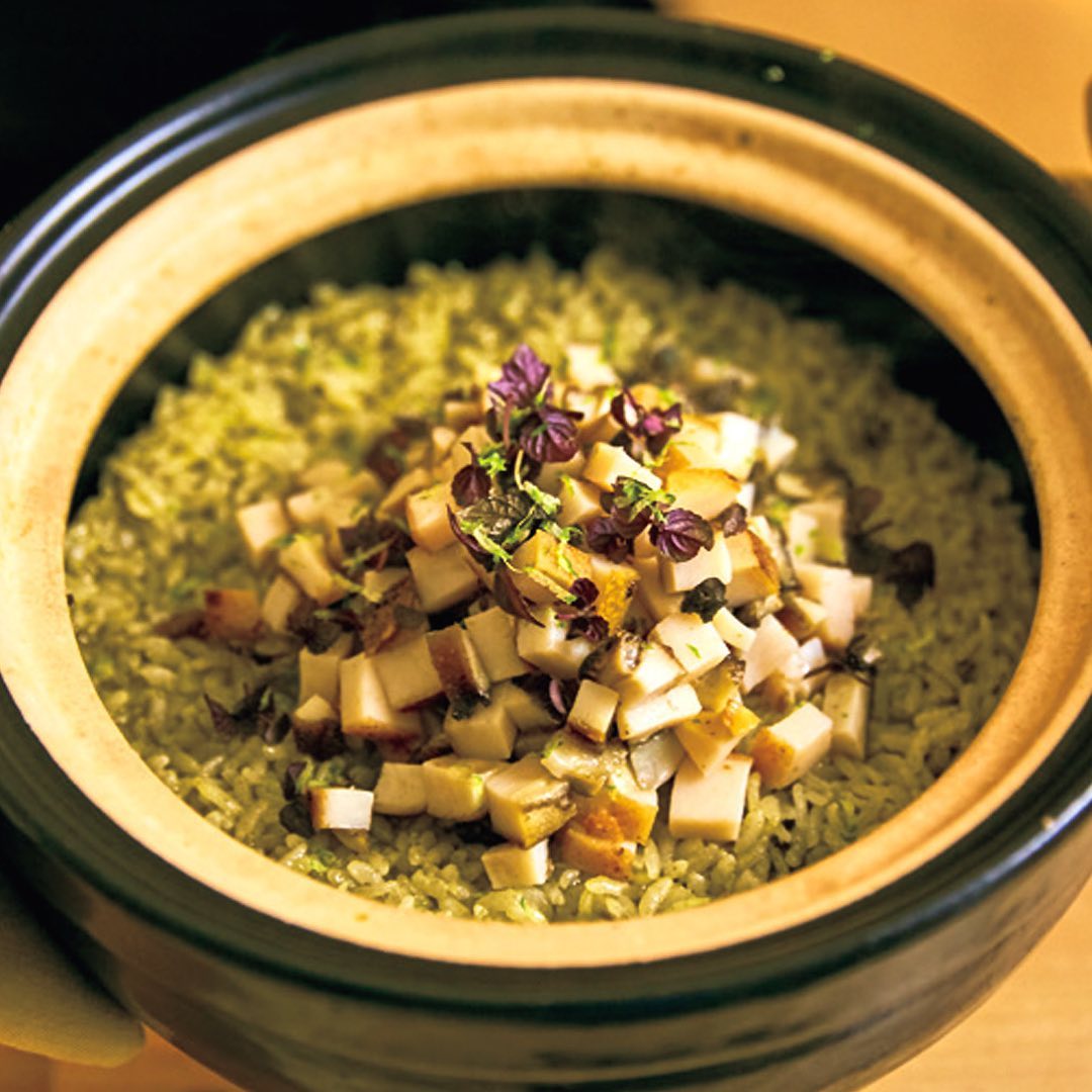 シェフの言葉通り、グジュールで毛蟹を挟んだアミューズに始まるおまかせコースでは、八寸仕立ての前菜や、土鍋で仕上げるリゾット風のアワビご飯がお目見えするなど、遊び心満載!