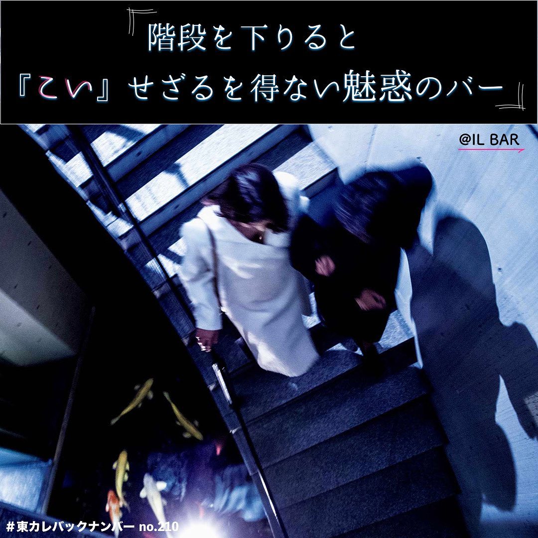 【階段を下りると“こい”せざるを得ない魅惑のバー。大人なムードが漂う空間で静かな恋に酔いしれる『IL BAR』】. .地下へと続く階段の下は、まさかの池。煌びやかな鯉が泳ぐのが見える。.彼女の足元が高いヒールで心許ないのであれば、さりげなく腕を絡ませてエスコートを。響き渡るヒールの足音が、高鳴る鼓動にシンクロする。.足を一歩踏み入れたと同時に暗闇がふたりを包み込む。何が待っているのだろう……。そんなワクワクを胸に、奥へと進んでいく。.頼れるのはスタッフに照らされたライトだけ。それがまたさらに気持ちを盛り上げる。.