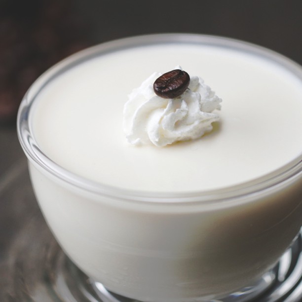 4.冷え固まった(3)にホイップクリームとコーヒー豆をのせたら、完成!