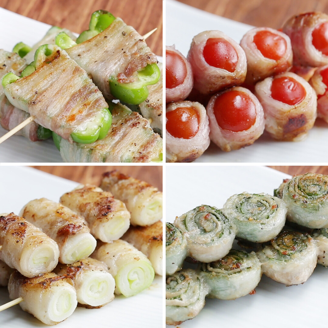 ビールにぴったり♪ 4種の豚巻き野菜串焼き