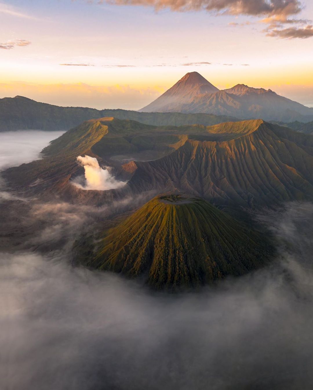 Definitely worth getting up at mid-night and traveling six hours to another Indonesian island to see these amazing volcanoes for sunrise. Photography | @davide.anzimanni Bromo , East Java #Bromo #canon_photos #cpcollectives #eastjava #sunrise #drone