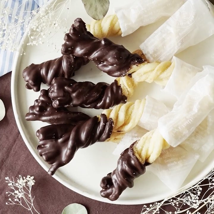 4. シナモンシュガーをまぶし、コーティングチョコレートをつけたら完成!⠀