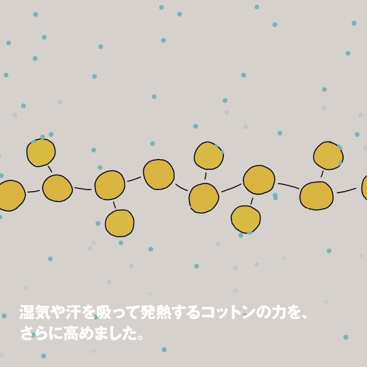 湿気や汗を吸って発熱するコットンの力を、さらに高めました。