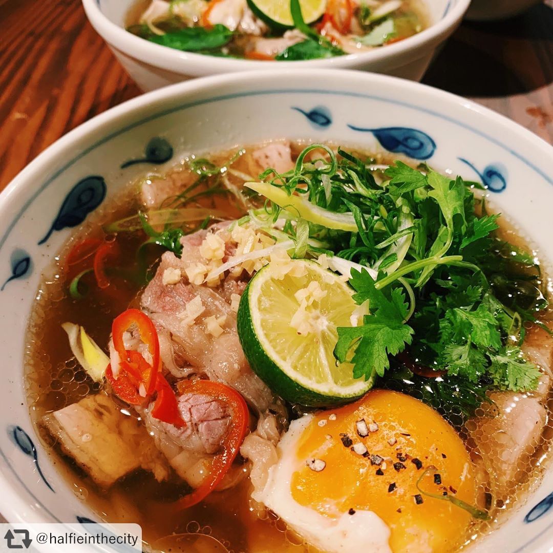 先程の続きです🙋🏽♀️ ハワイの大人気モダンベトナム料理屋さんの来日プレオープンのメニューで1番印象に残ったのはこちらのビーフフォー🐃!ジューシーな牛肉とコクのあるスープに濃厚な卵の黄身を絡めることで美味しさが更に引き立っていました💓⠀⠀⠀⠀⠀⠀⠀⠀⠀