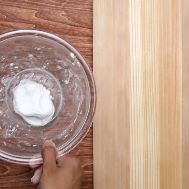 2. 団子を作る。ボウルに全ての材料を入れ、耳たぶ程度の硬さになるまでよくこね、犬の顔の形を作る。