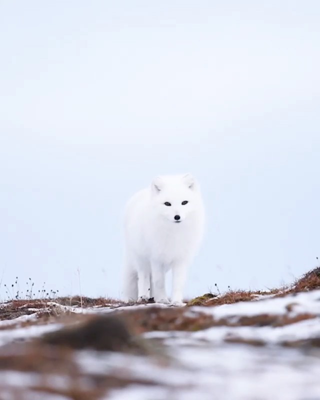 @omeragraph // Magical moment during dawn with a pure white arctic fox on Svalbard tundra. These foxes are extremely curious and they often even follow hikers on the mountains. Filmed with canon 1dxii and 600mm mkii.