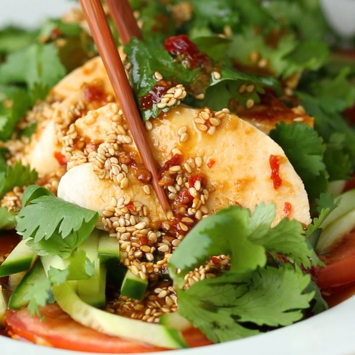 しっとりよだれ鶏🍀パクチーを添えて