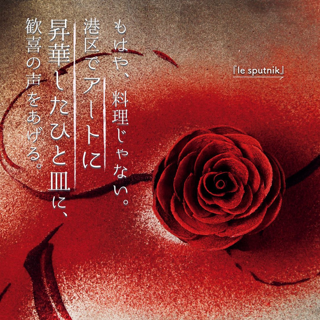 港区で咲き、港区だけで愛でられる薔薇。それが『ル・スプートニク』の、今やシグネチャーディッシュとなった「フォアグラ・ビーツ・薔薇」だ。