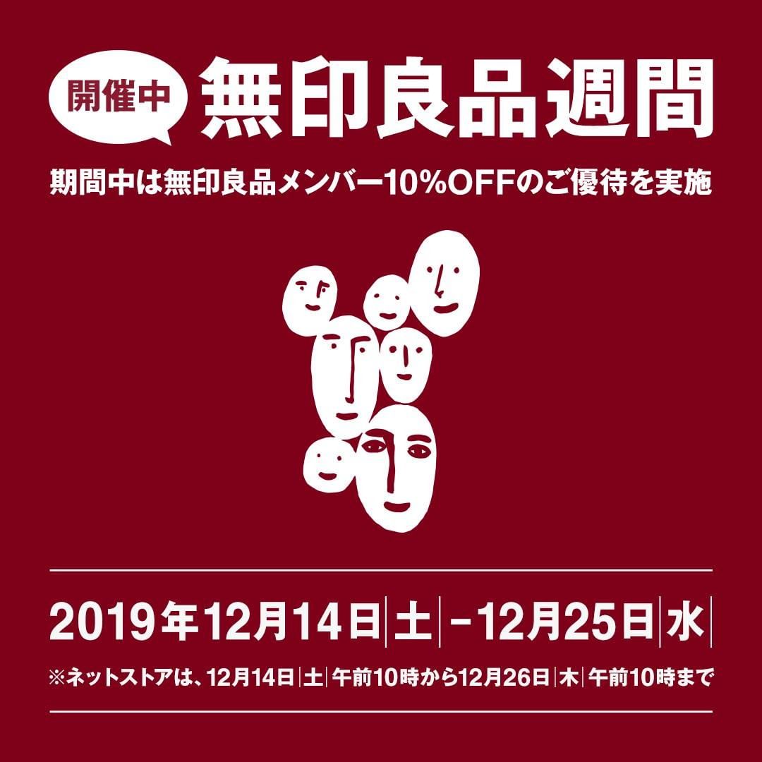 @MUJI無印良品 MUJI無印良品: 【無印良品週間】12月25日(水)まで開催 無印良品メンバーの皆さまに感謝を届ける「無印良品週間」を、12月25日(水)まで開催しています。(ネットストアは12… 2019-12-14 【無印良品週間】12月25日(水)まで開催 無印良品メンバーの皆さまに感謝を届ける「無印良品週間」を、12月25日(水)まで開催しています。(ネットストアは12月26日(木)午前10時まで) 期間中、店舗では MUJI passport やクーポンメールの提示で10%OFF、ネットストアでのお買い物も10%OFFです。 ※他の割引との併用はできません #無印良品 #MUJI #無印良品週間 Ciao, Nihon.