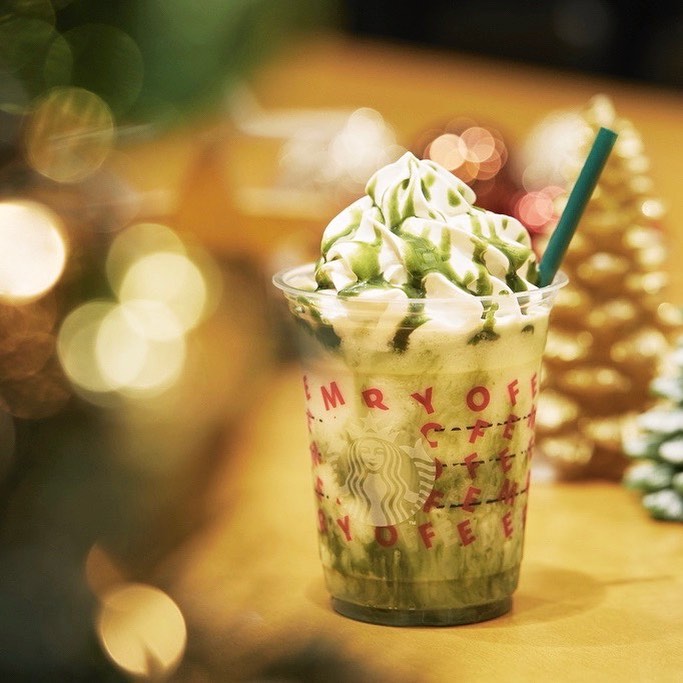 明日(12/19)から『#抹茶ホワイトチョコレートフラペチーノ / #抹茶ホワイトチョコレート』が帰ってきます💚🤎