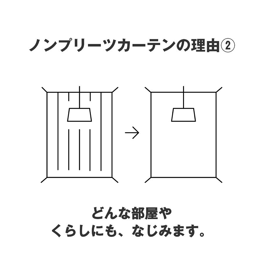 カーテン本来の「窓を覆う」機能を見つめ直し、1枚の布としてどんな部屋やくらしにもなじみ、素材の表情を楽しめる、ノンプリーツのカーテンをつくりました。
