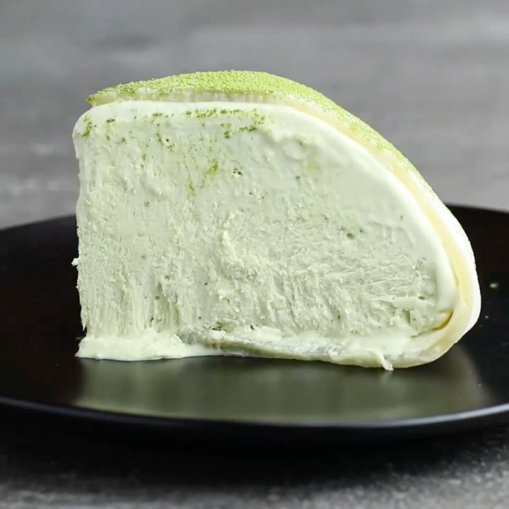 5.上から抹茶を振りかけたら、完成!切り分ける前に15分~30分ほど常温に戻しておく。