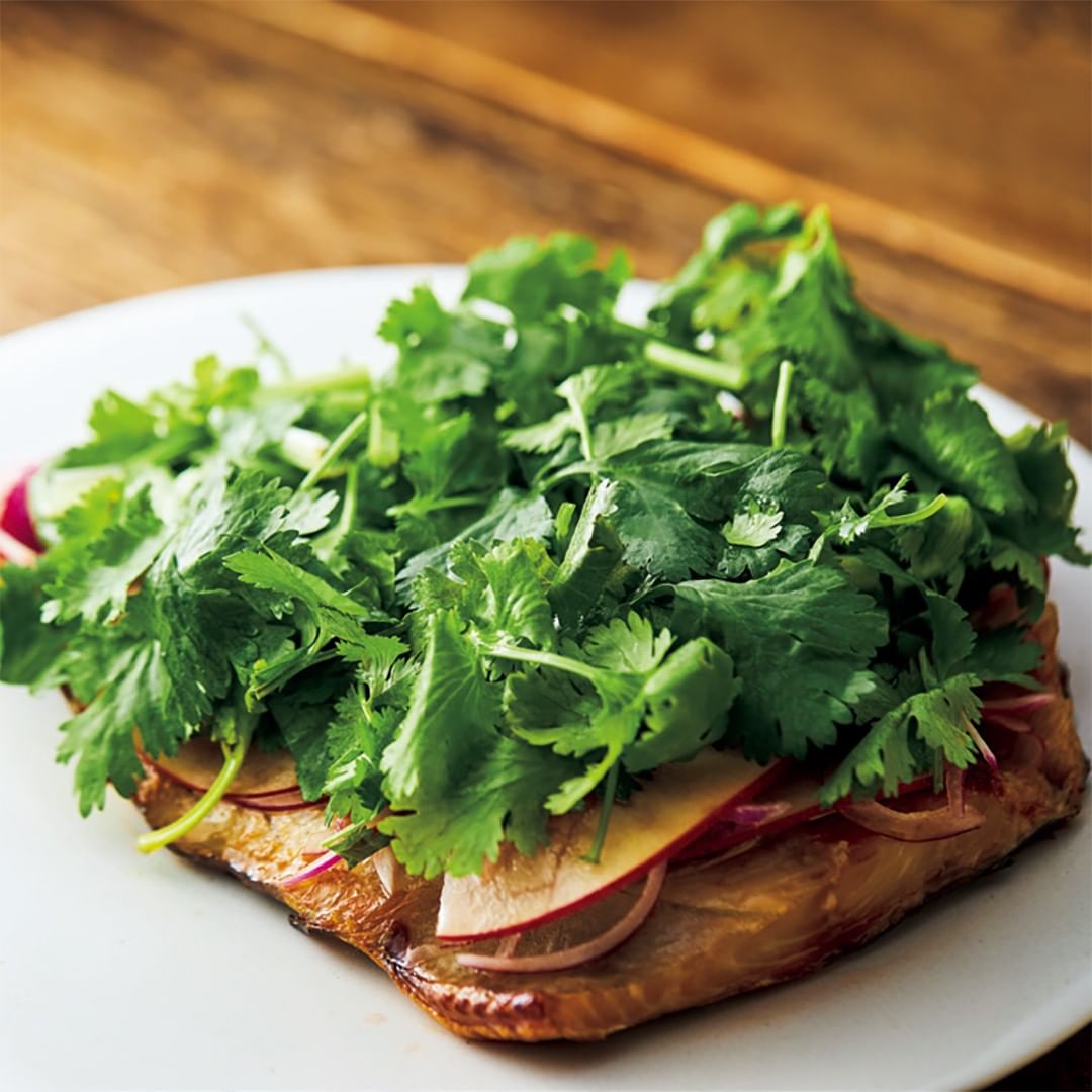 肉厚な北海道産ホッケに、ナンプラーやヴィネガーで和えたバクチーサラダが最高にハマる!⠀⠀⠀⠀⠀⠀⠀⠀⠀