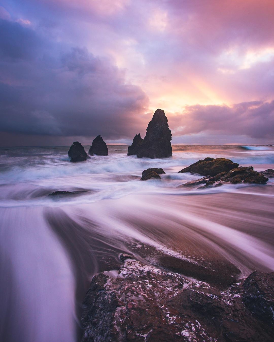 “It had been raining on and off the entire day but around 5pm I saw that the storms could finally be clearing around sunset. So, I drove down to a local beach in hopes that the clearing rain would provide me with a beautiful sunset. It was drizzling when I arrived but I waited out the rain and rainbows for these lovely colors that came through later. I used a 10 stop neutral density filter to smooth the water and create the leading lines in this image.” #MyCanonStory