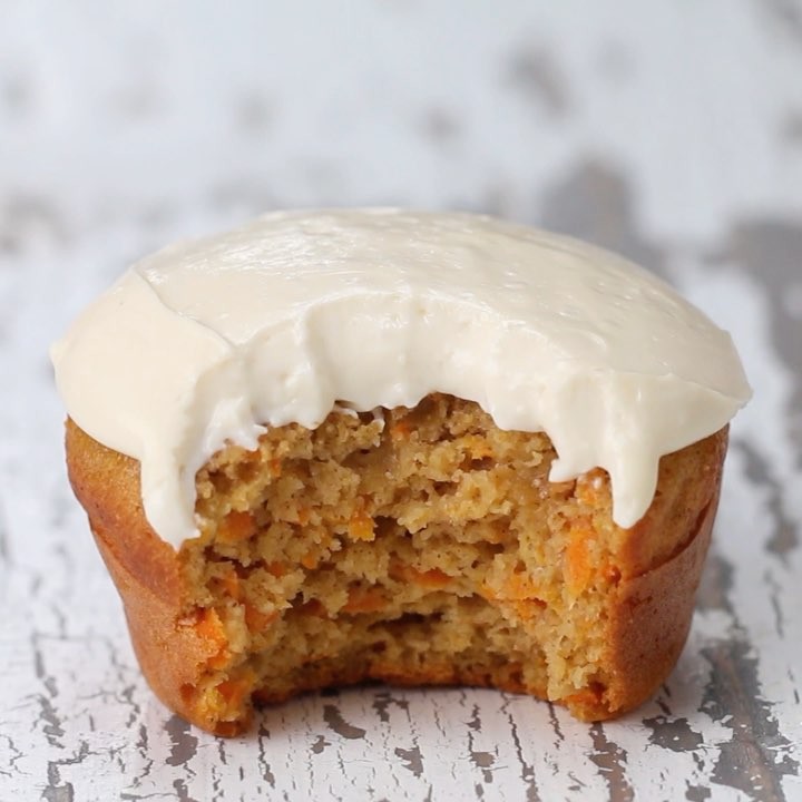 3. メープルシロップ、牛乳、バニラエクストラクトを加えてよく混ぜたら、にんじん、全粒粉、ベーキングパウダー、シナモンを加えて混ぜ合わせる。