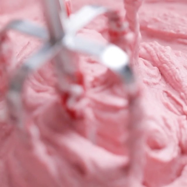 3.(2)に(1)、レモン汁を加えてよく混ぜる。いちごパウダーを加えて色付くまで混ぜ、口金の付いた絞り袋に入れて冷蔵庫で30分冷やす。