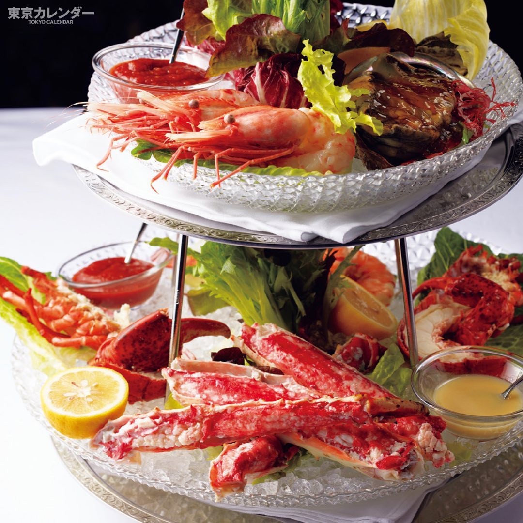 前菜はロブスターやアワビ、タラバガニが彩るシーフードタワー。まるでニューイヤーを祝うかのごとき