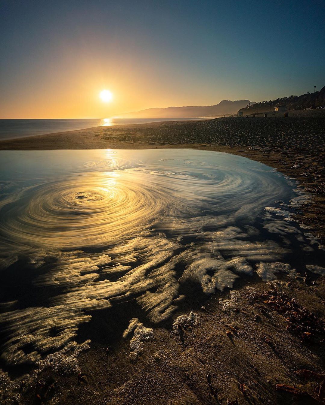“Standing in front of one of the largest tide pools I have ever seen, I saw the crashing waves stirring up the sea foam in the pool and swirling it around. As the tide pool kept expanding and contracting with the tide, I chased the edge of the pool to make several long exposures with the intention of capturing the dynamic movement of the floating sea foam. I created the end result by blending three exposures. On top of the base image containing the central swirl, one exposure was necessary to recover the blown out sky and the other contained sharper foam swirls in the foreground.” #MyCanonStory