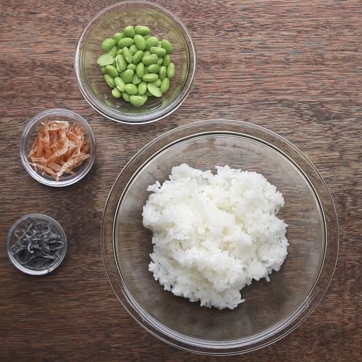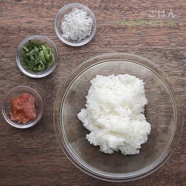 1.ごはんに(A)を加え、混ぜ合わせる。