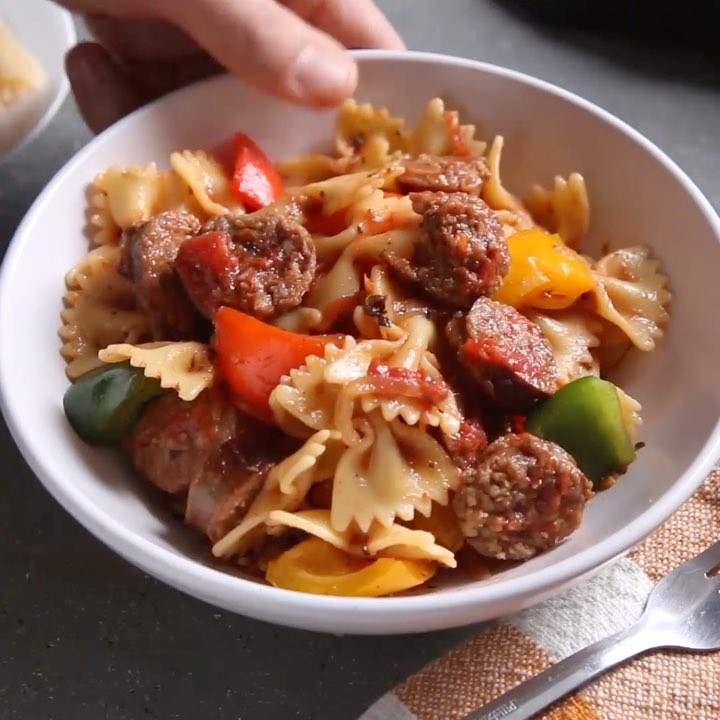 #パスタ #ファルファッレ #ソーセージ #パプリカ