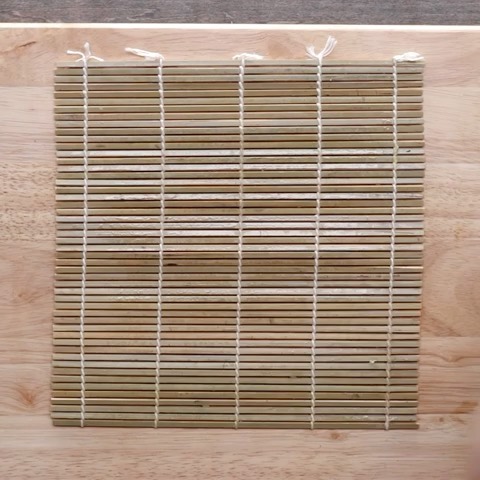 3. 巻き簾にのりを置き、縁の3cmくらいを残して酢飯を敷き詰める。