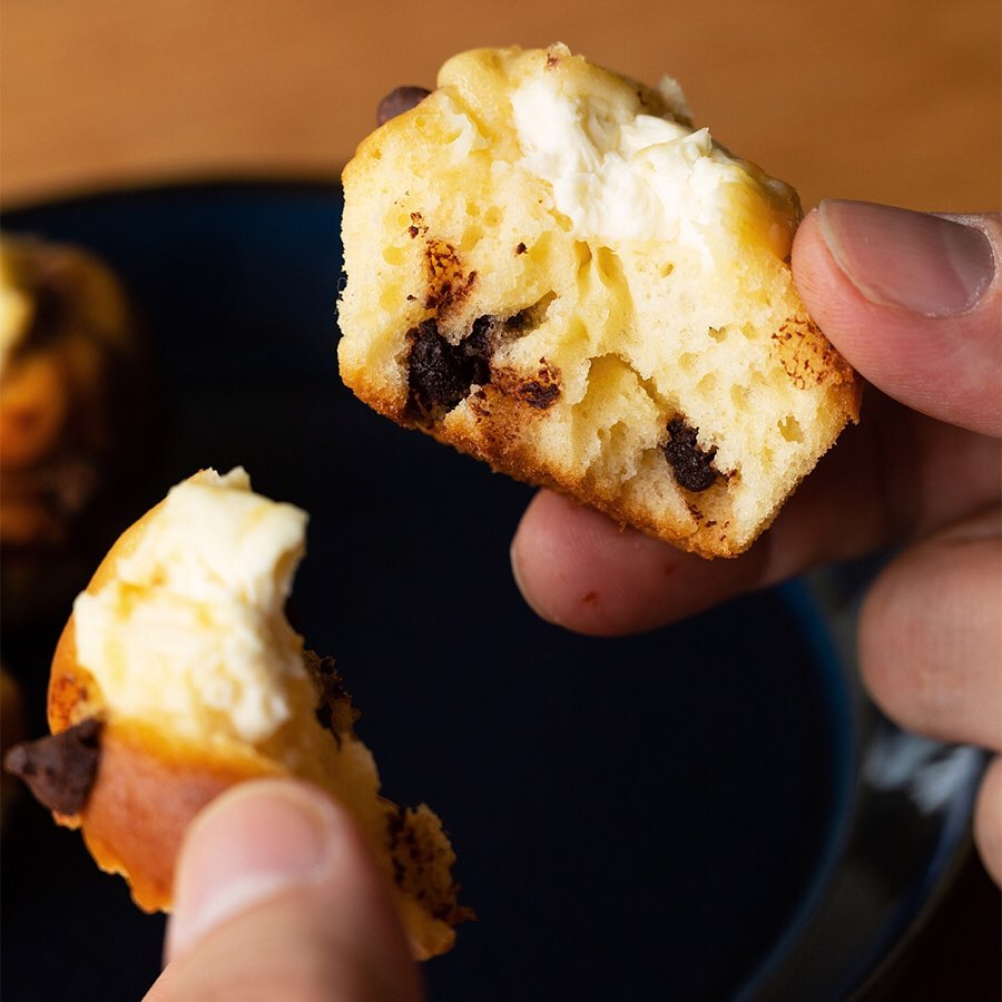 今回のレシピは、「自分でつくる チョコチップマフィンボリュームパック」を使った「クリームチーズチョコチップマフィン」。チョコチップとクリームチーズがくせになる、絶品マフィンです。