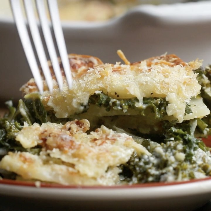 チーズがこんがり♪ じゃがいもとケールのグラタン
