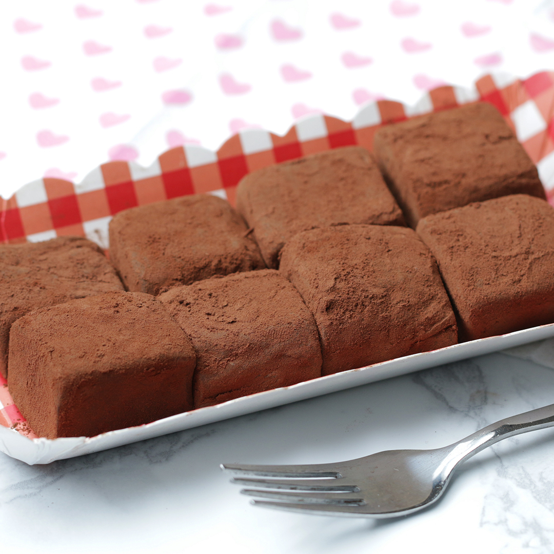 4.ひと口サイズにカットし、ココアパウダーをまんべんなく振りかけたら、完成!