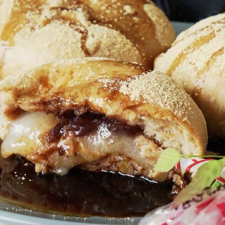 2.分け、つぶあんと信玄餅の餅を包む⠀