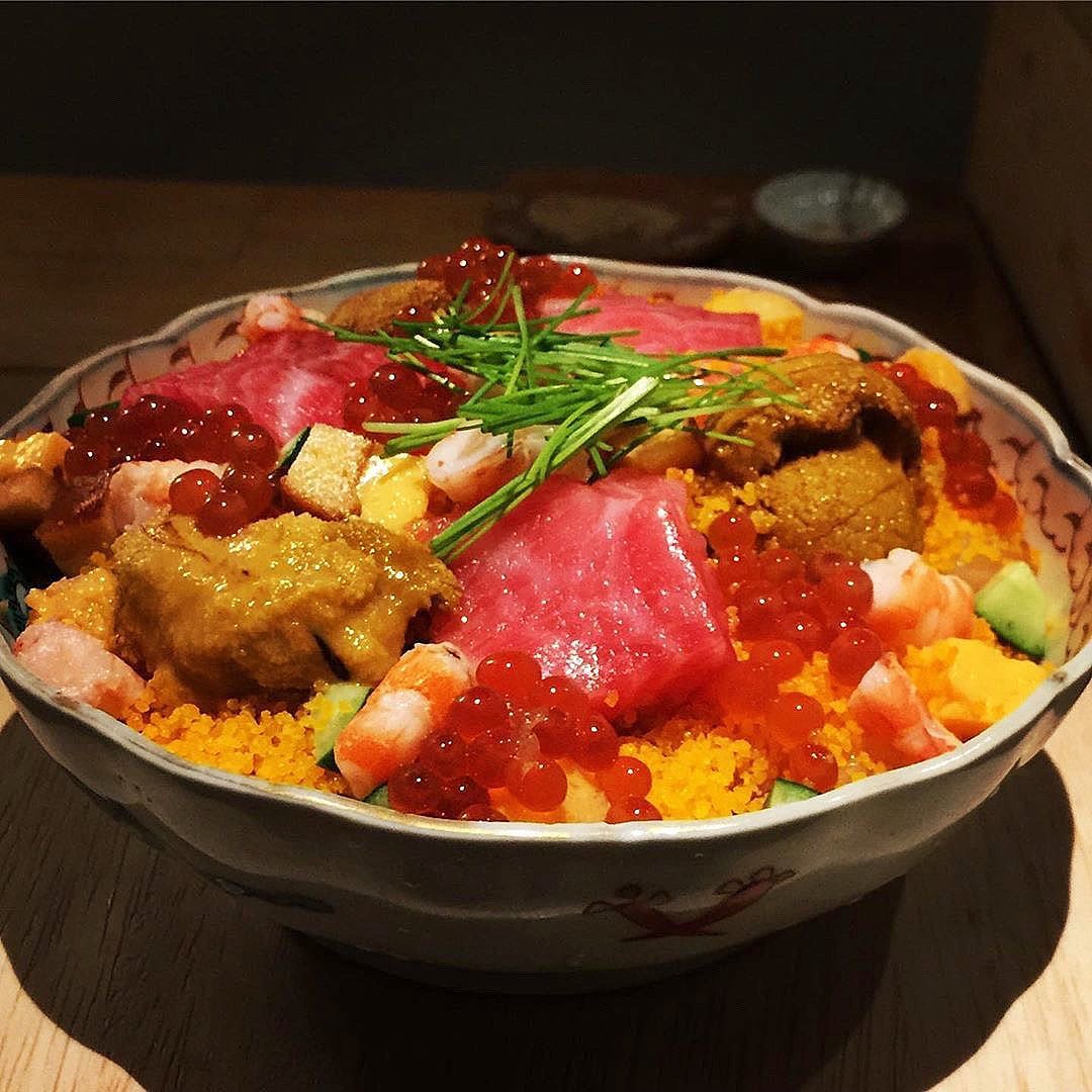 神楽坂のさかなくん⁉︎と呼ばれるほど、魚に詳しい大将とソムリエが二人三脚で営む、カウンターのみのお鮨屋さん。この日はランチ利用😋。上質なマグロにいくら、ウニ、車海老など、まさに海の宝石箱✨と呼ぶに相応しいばらちらし😍💕。美味しかった〜。事前予約マストです😊️。忍べます😆