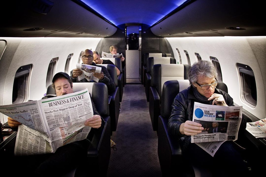 Photo by #CanonExplorerOfLight @davidbergman | “Traveling around the world on a private jet with Bon Jovi was definitely the experience of a lifetime. People think it’s one big party, but the truth is that it’s no different than flying with any other executives who are just trying to get to their destination as quickly and efficiently as possible. Sometimes the guys just want to read the paper.” @bonjovi