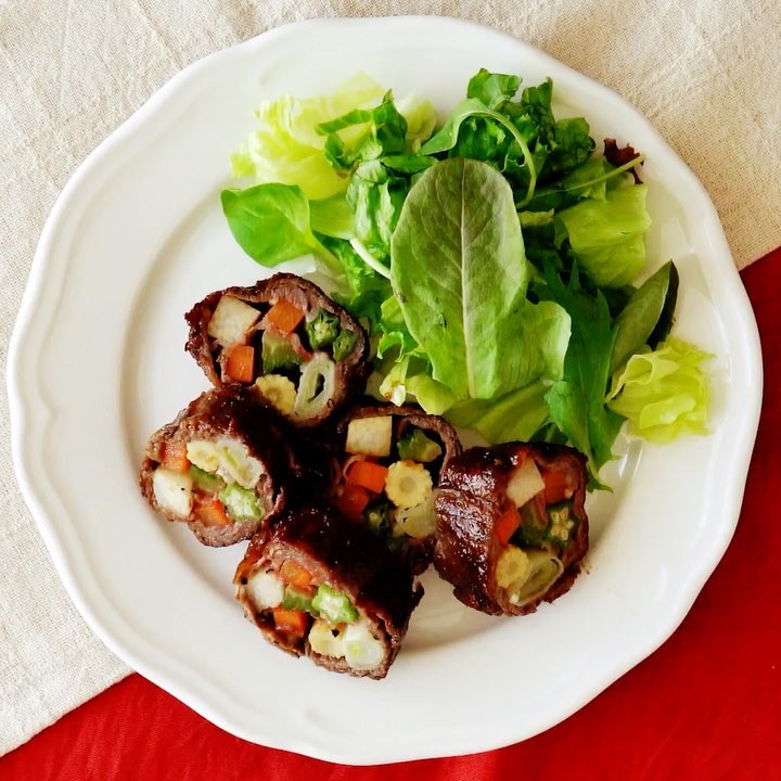【夏野菜をぎゅぅっと詰め込んだ】お野菜の牛肉ロール🍖⠀