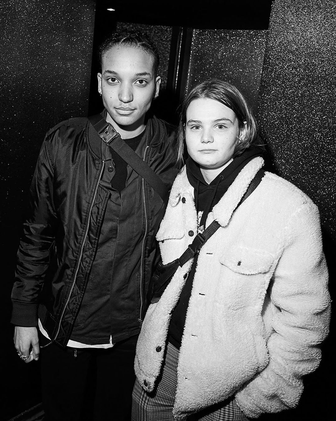 @angele_metzger, in a shirt from the #KENZOFW20 collection, @the_pirouettes and @zoeheran_ celebrate the first show by @felipeoliveirabaptista.