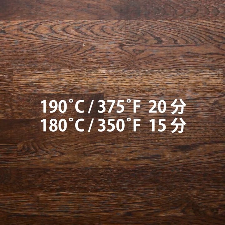 5. 190°Cのオーブンで20分焼く。その後温度を180˚Cに下げて15分焼き、さらに電源を切って余熱で10分焼く。