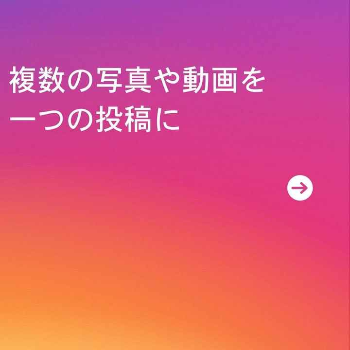 フィード投稿をアップロードするとき、新しいアイコンが表示され、複数の写真や動画を選ぶことができます。投稿の編集もとっても簡単。編集中は長押しして並び順を変えたり、フィルタを一括で設定したり、あるいは個別に編集したりできます。現時点では、投稿に追加できるキャプションは1つで、正方形の写真や動画にのみ対応しています。
