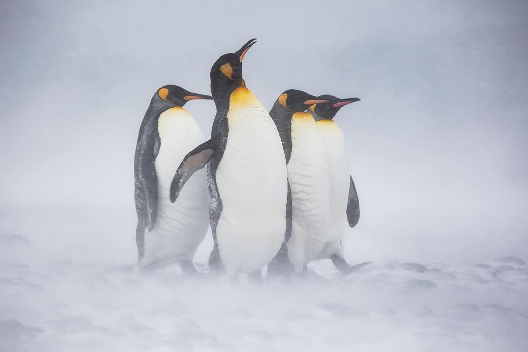 Behind the shot with #CanonExplorerOfLight @Jenwuphoto | “There were hundreds of penguins on the Salisbury Plain on the Islands of South Georgia and I picked a small group that was isolated from the rest to focus on. I rested on my belly in the snow storm and waited until they did something interesting. One in the center looked up at a time when the wind came up creating the misty mood with the horizontal falling snow. I used 1/500 second to stop the action of them walking and f/7.1 to get enough depth of field since they were on slightly different focal planes.” Camera: #Canon EOS 5D Mark III