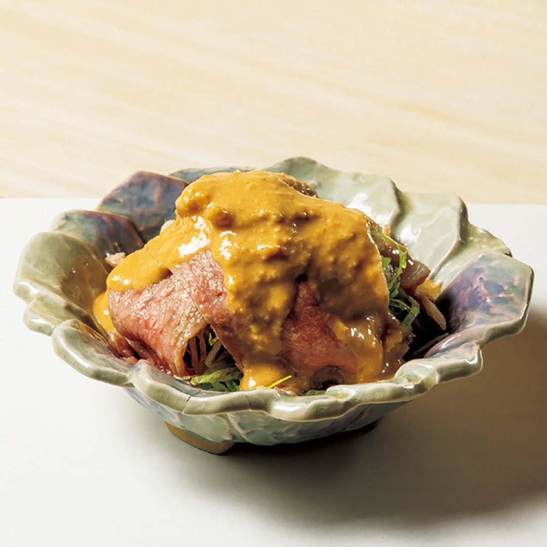あさり鍋のほかに牛しゃぶのコースも人気で、その同じ肉で作る牛しゃぶサラダが一品料理として提供される。