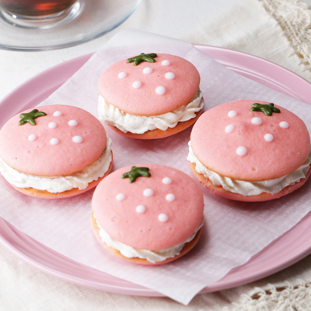 ピンク色がキュート💓いちごのふんわりウーピーパイ 🍓