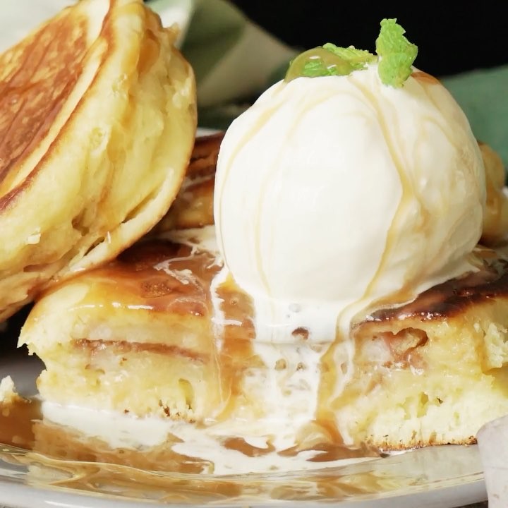 【中はサクサク!】アイスのせ♡アップルパンケーキ