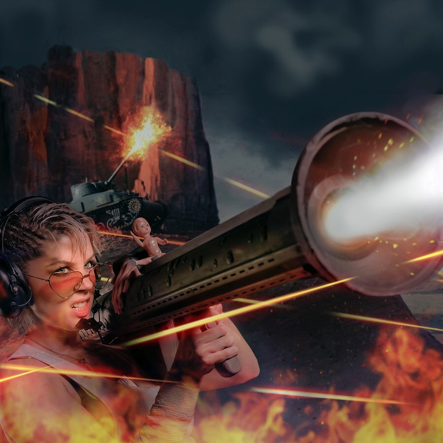 Editing: My model’s poses were visually-resized and layered over the desert backgrounds until I was happy with the look. Flames, smoke, dust, and tracer fire were added in post.” Follow @dorn.bruce and check out earlier chapters of “The Adventures of Bad Apple & Ducky.”