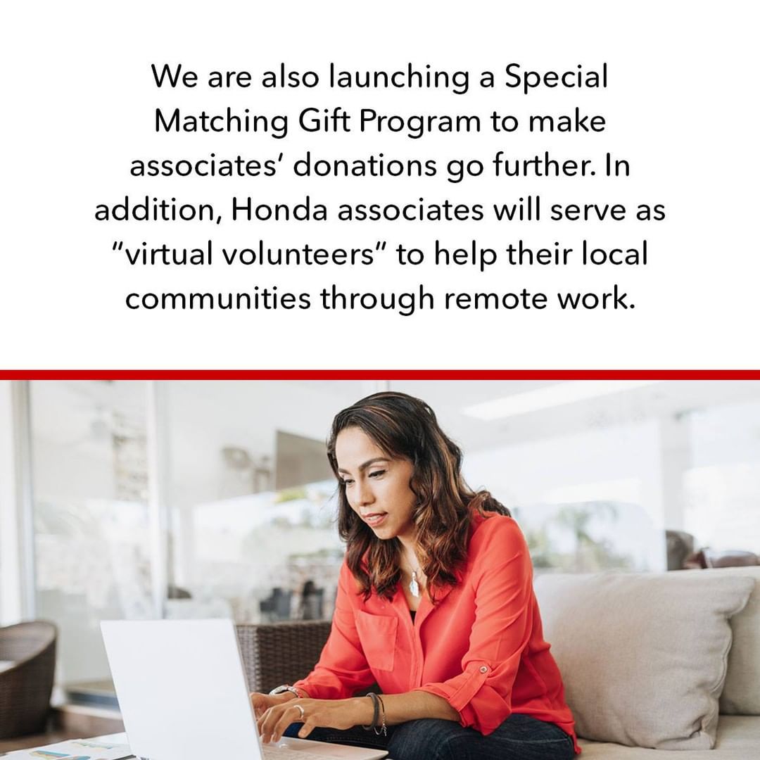 Honda has always believed in the Power of Dreams, but in these circumstances, our belief rests on something greater. We believe in the power of community to get us through hardship. That is why we’re expanding our relief efforts to help more people in need. Swipe for more.