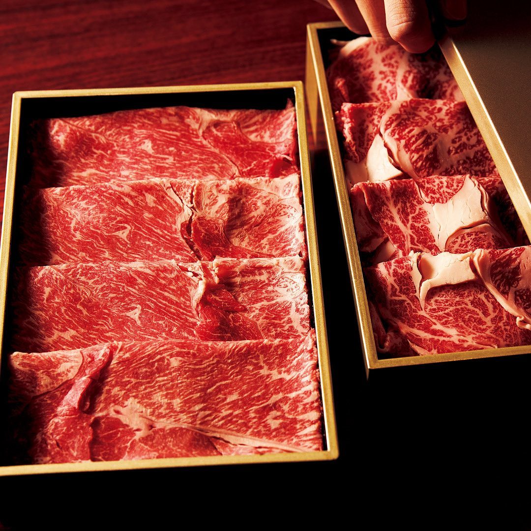 右が「近江牛リブロース 出汁しゃぶ」。左は「神戸牛 出汁しゃぶ」。