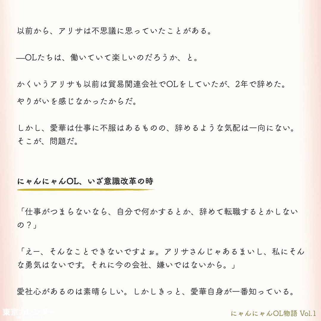 この物語は、元OLで現在はWebショップオーナーであるアリサ(29)の、“にゃんにゃんOL”観察日記である。