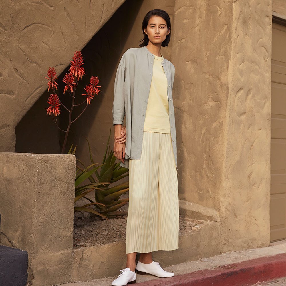 Double-layered Slippers for the ultimate cushion, Beautiful three-dimensional silhouette knit, Soft and comfortable pleated skirt pants, Smooth-textured supima cotton sweater.