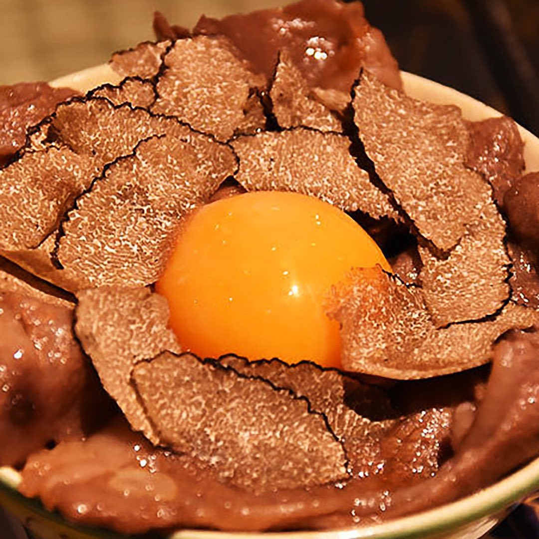 迫力のビジュアルはもちろんのこと、絶妙な火入れと味付けが施された肉の旨みと卵、そしてトリュフという贅の極みが口を襲う感覚は、一度食べたらヤミツキに。